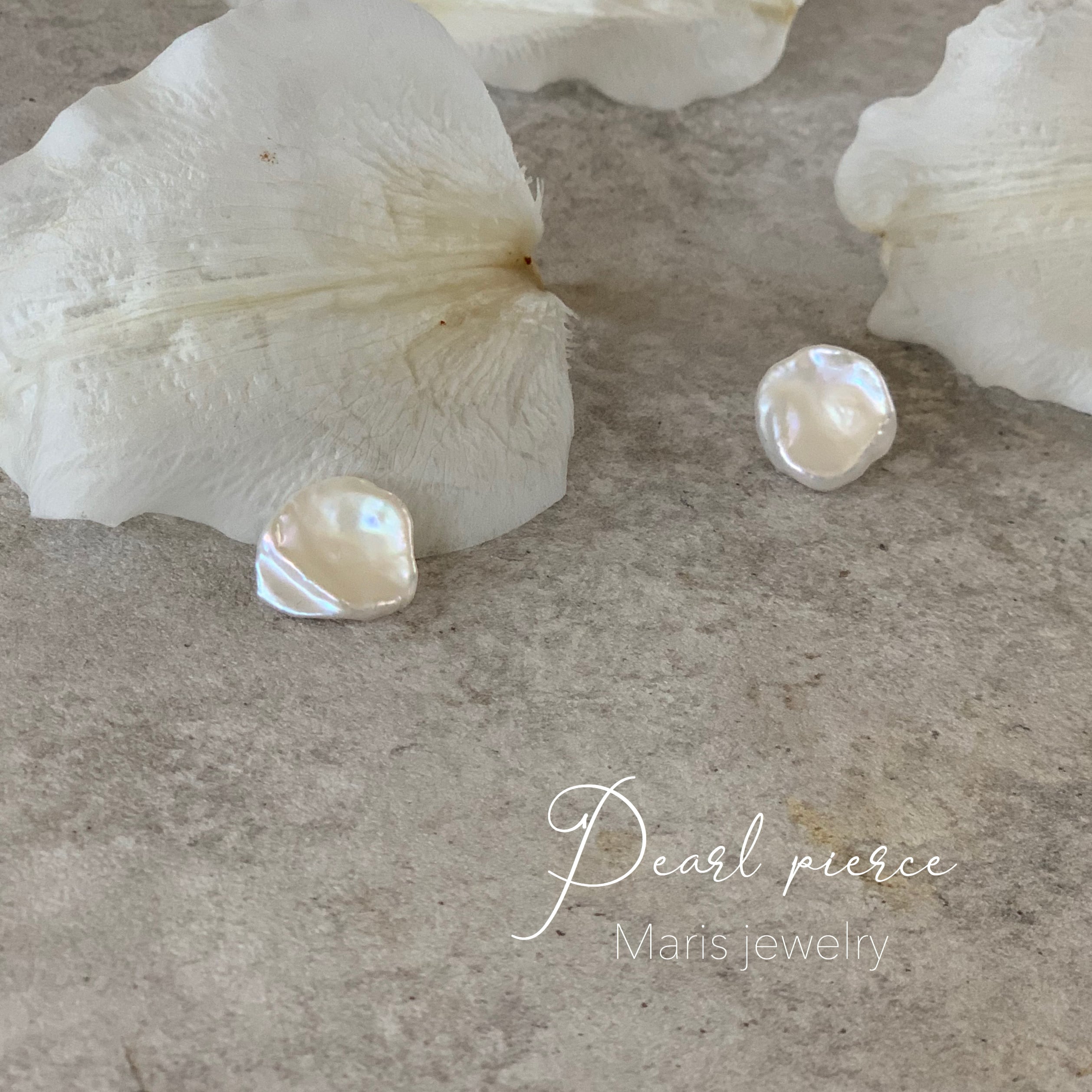 シックで上品な印象を与える「Petal」大粒ケシパールピアス。エレガントなデザインと、大きめのケシパールが華やかさを演出します。シンプルなのに存在感があり、どんなコーディネートにも相性抜群です。